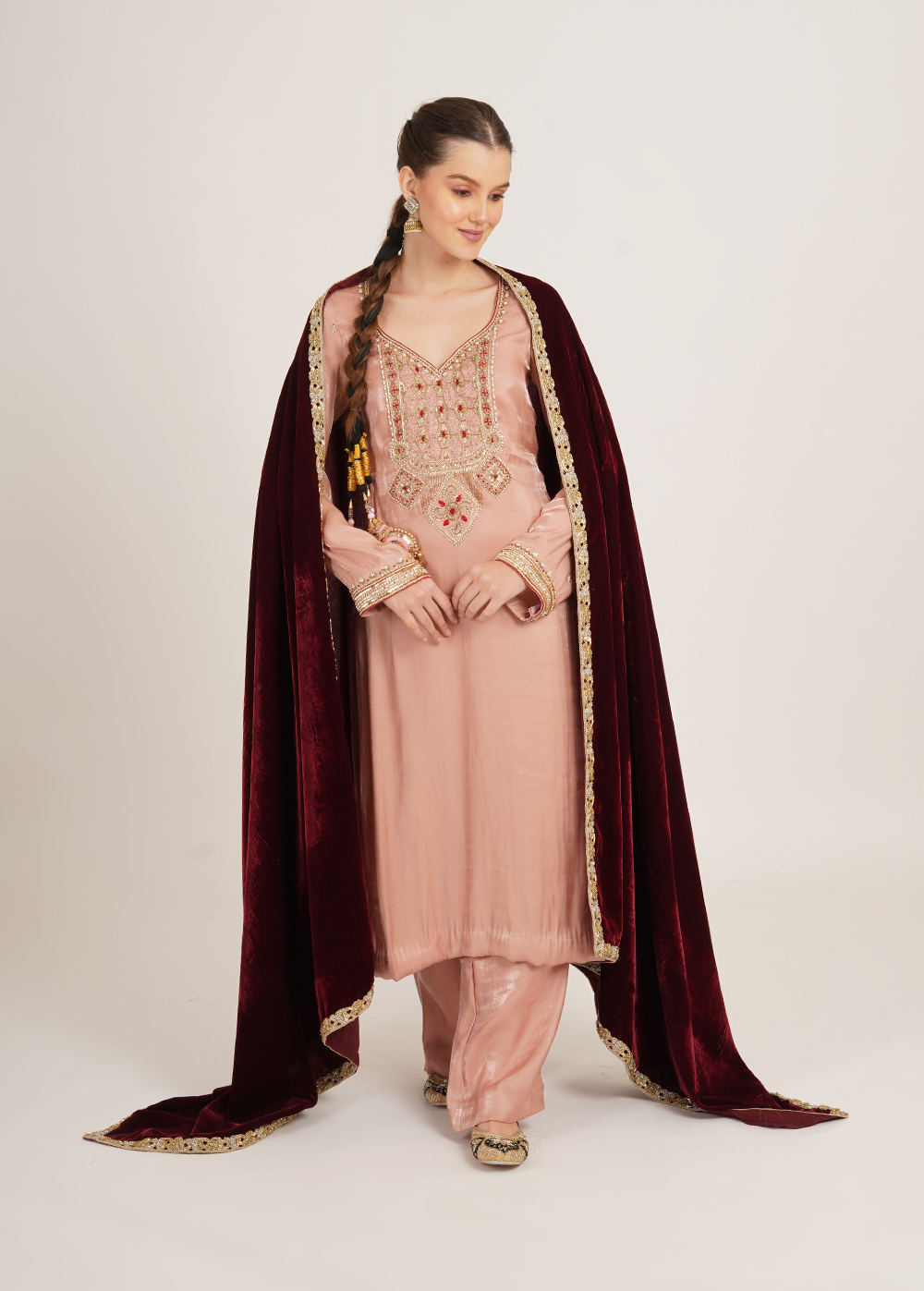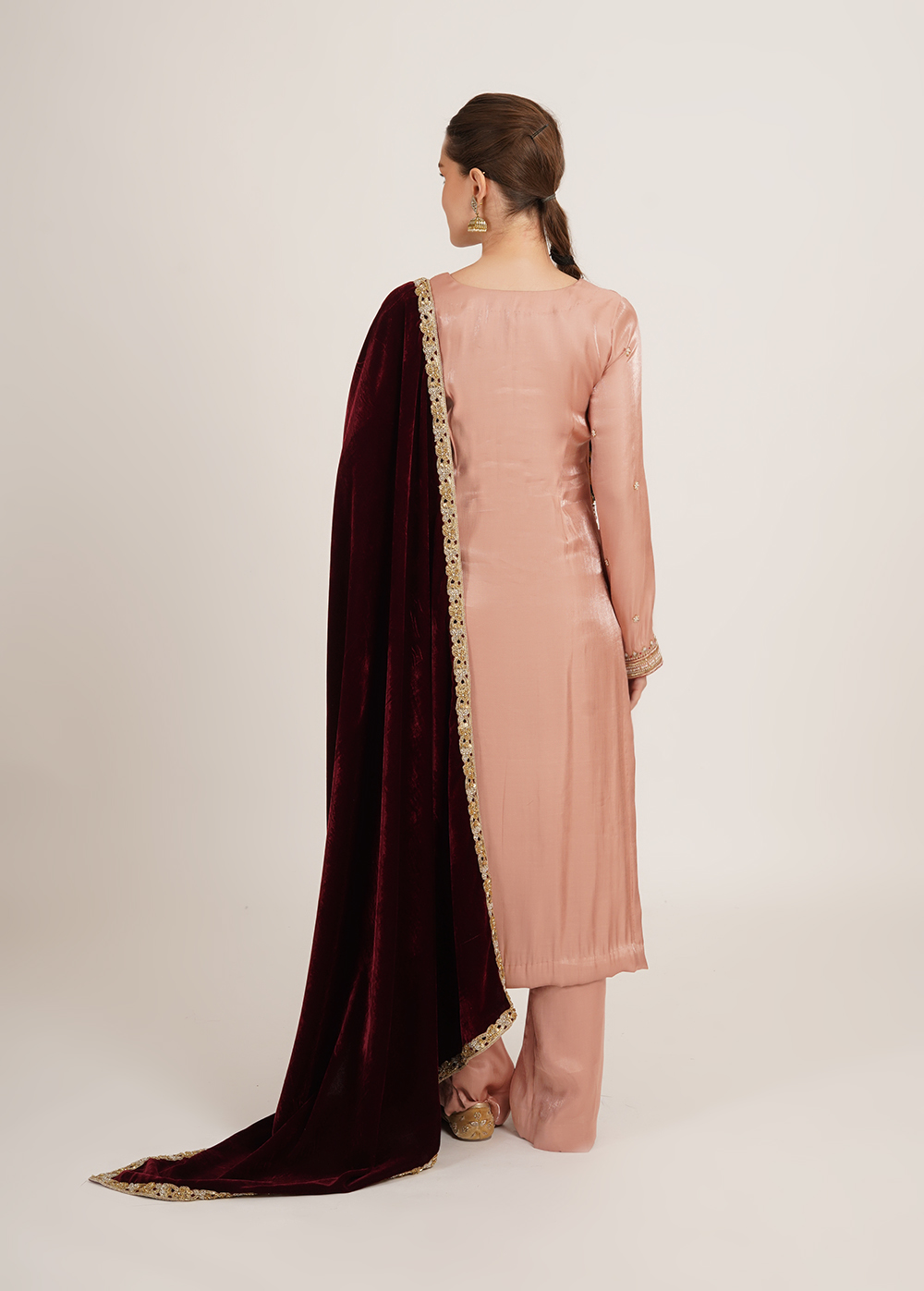Color- Shirt & Pants- Dusty Coral, Dupatta- Maroon